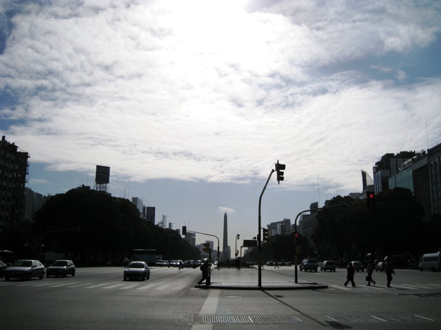 | Buenos Aires' expansive Avenida 9 de julio crossing the Washington Monument-like Obelisk |